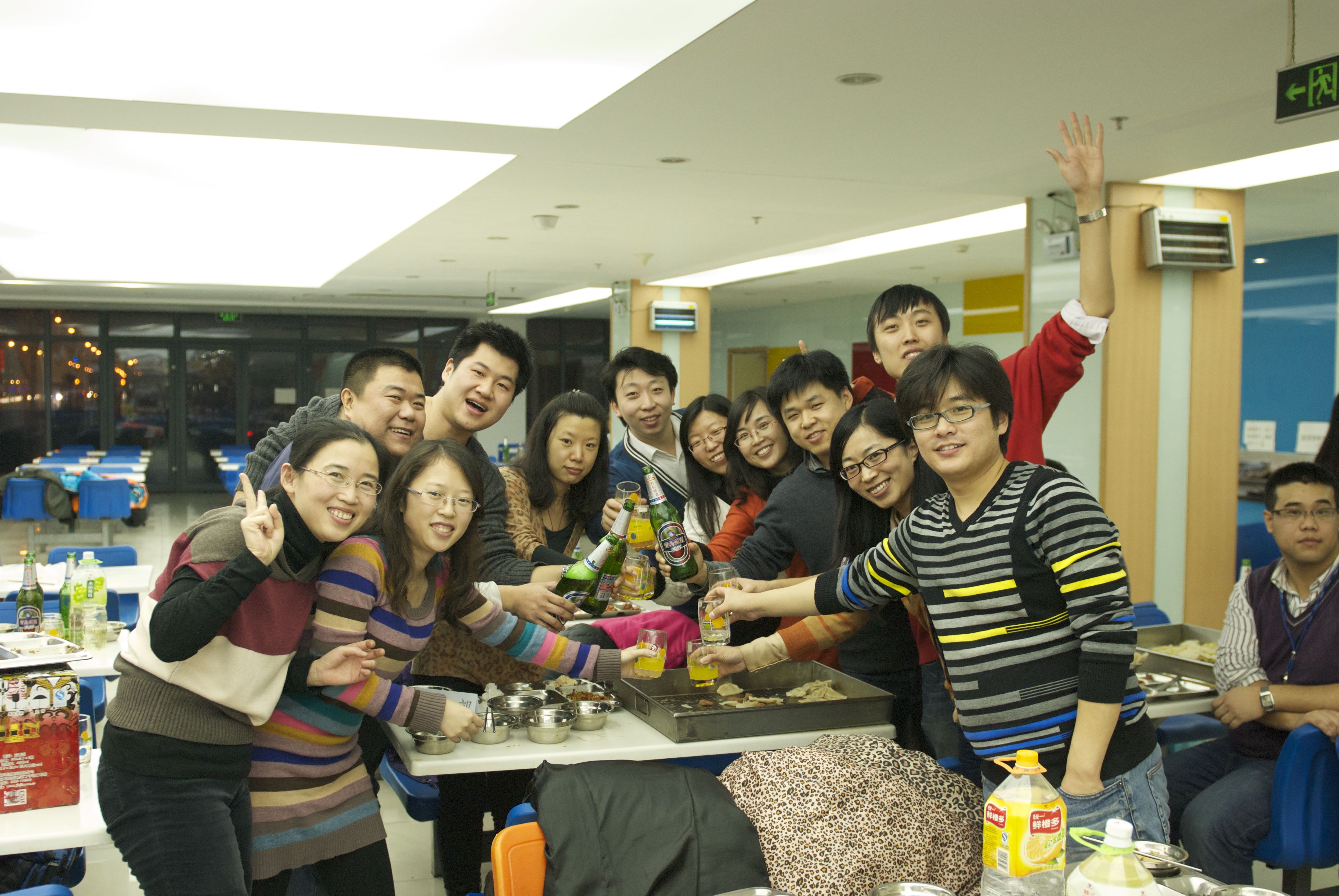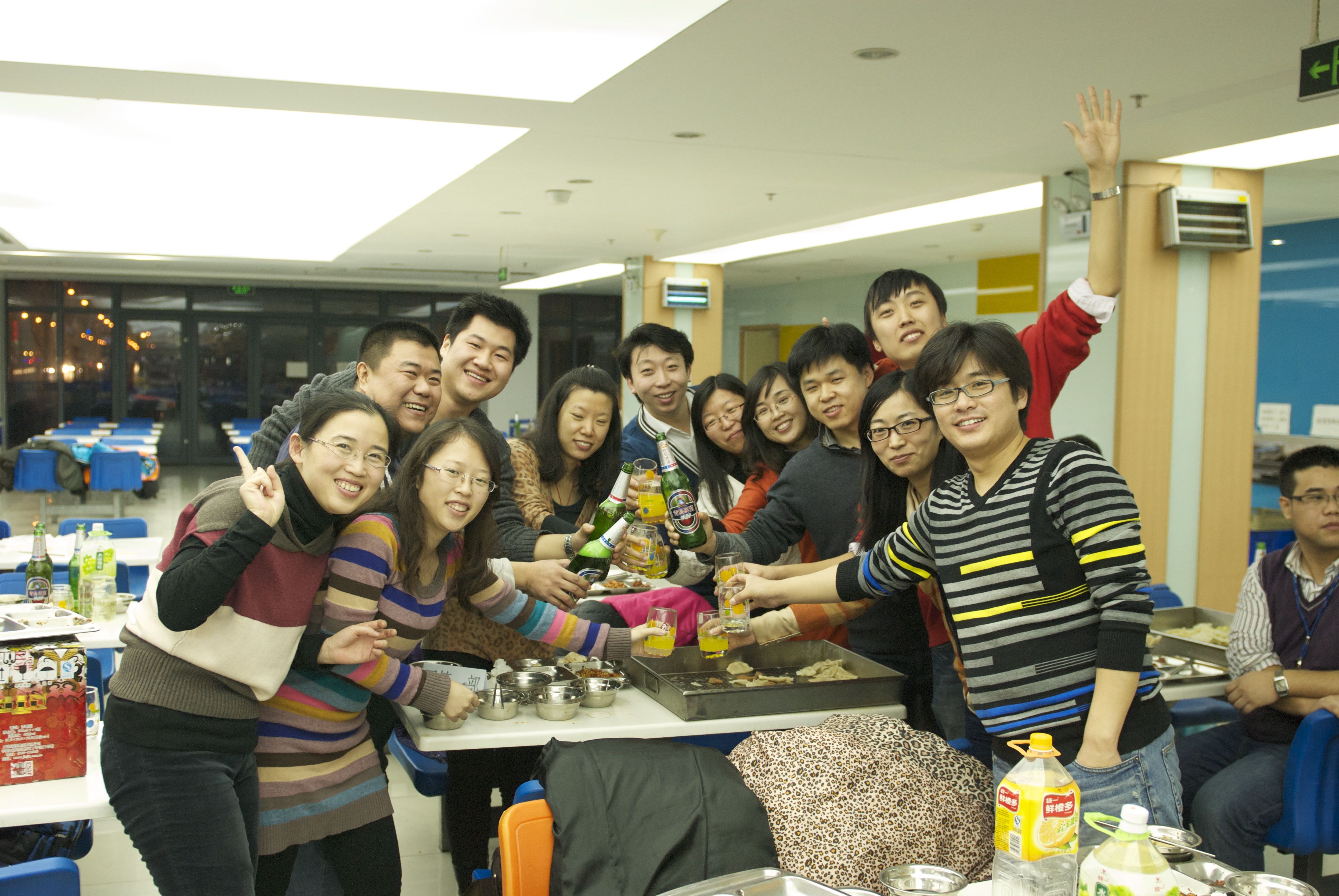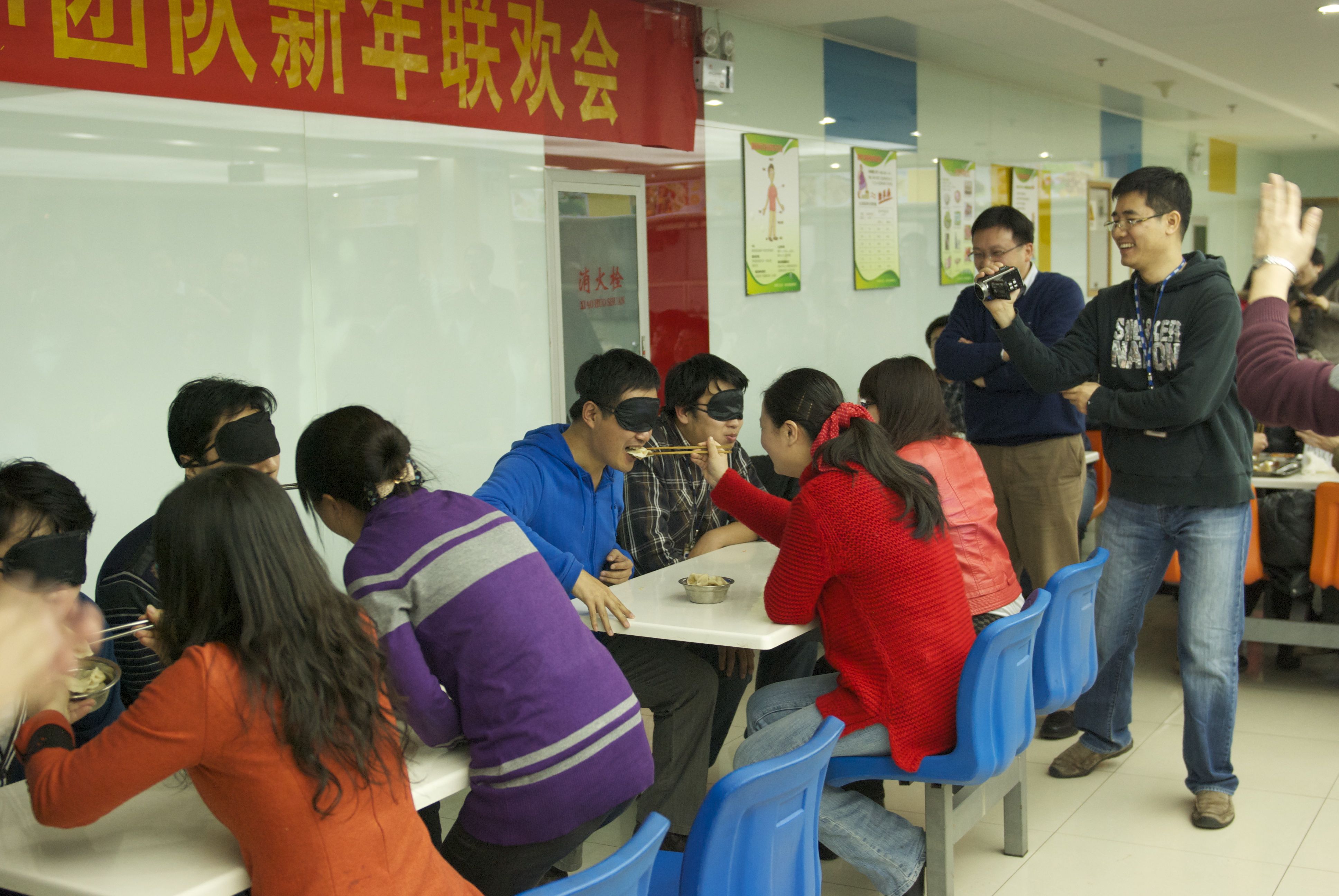 2013年公司亏损,年会就简化到食堂大家包饺子,做游戏了。那时我们刚结婚没多久,最后一个两人的新年。😏