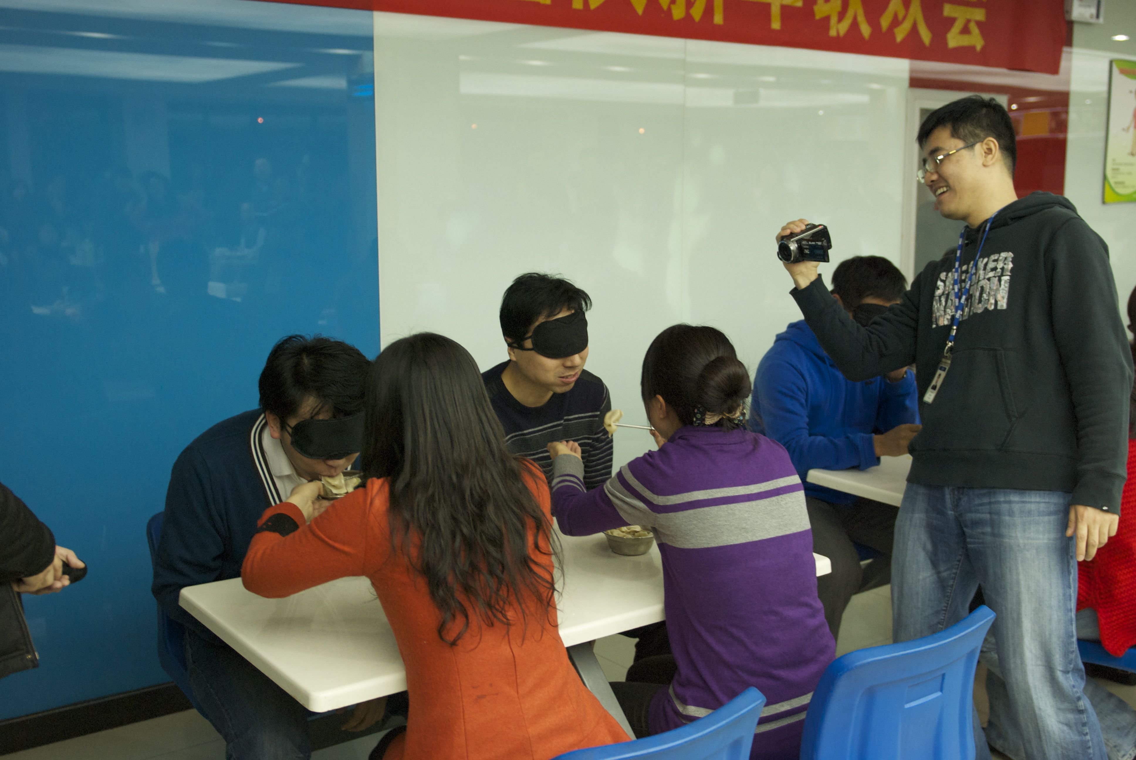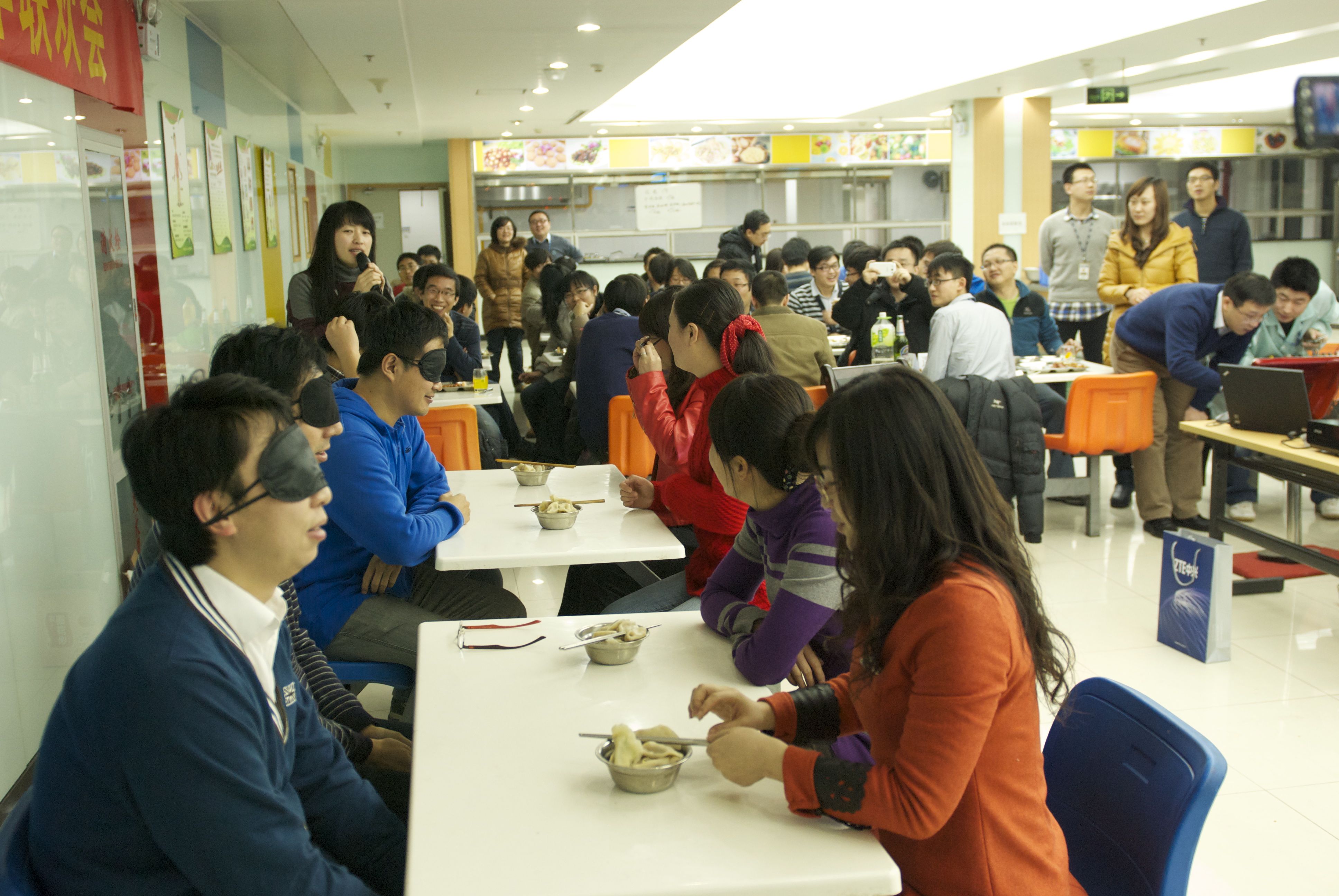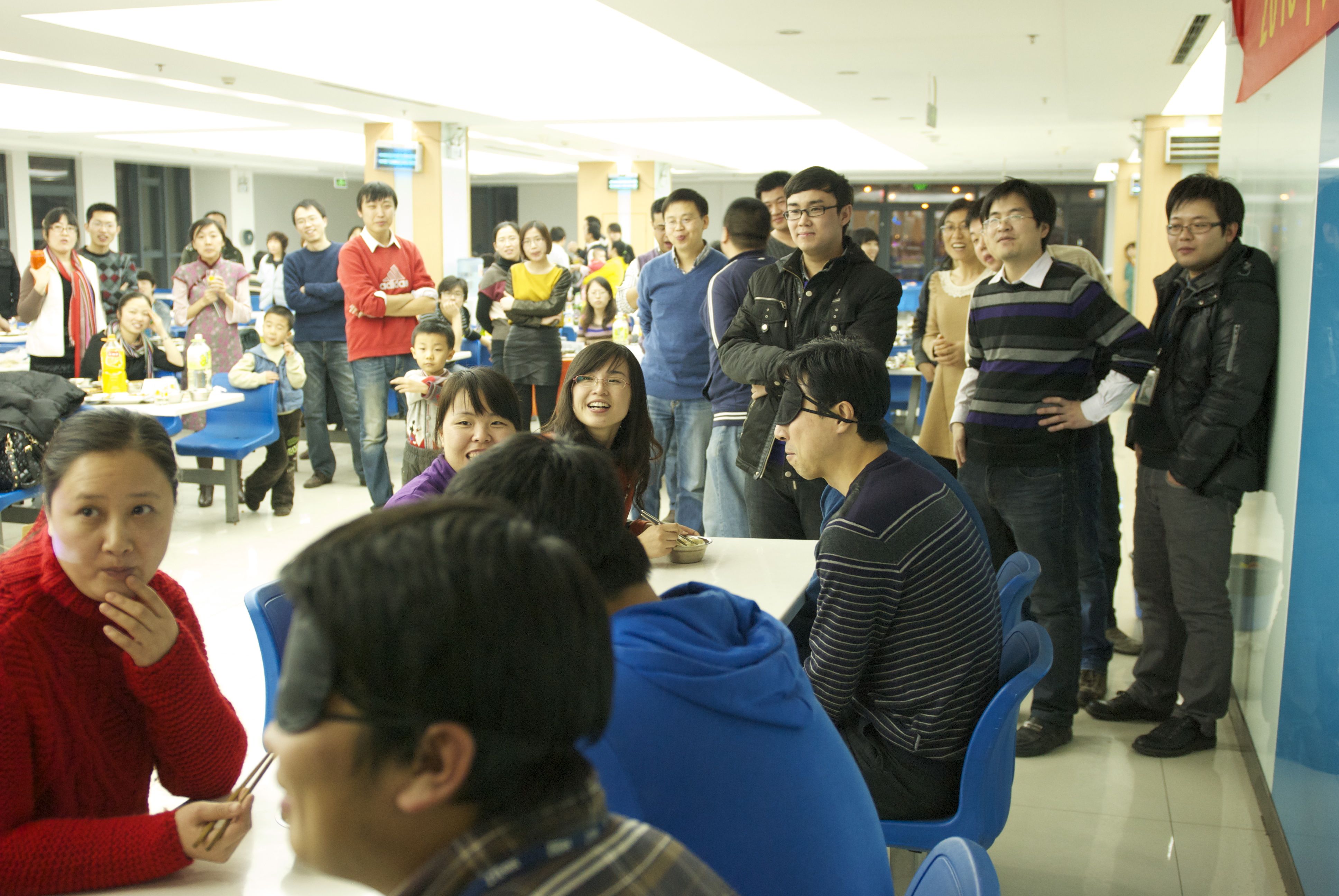 2013年公司亏损,年会就简化到食堂大家包饺子,做游戏了。那时我们刚结婚没多久,最后一个两人的新年。😏